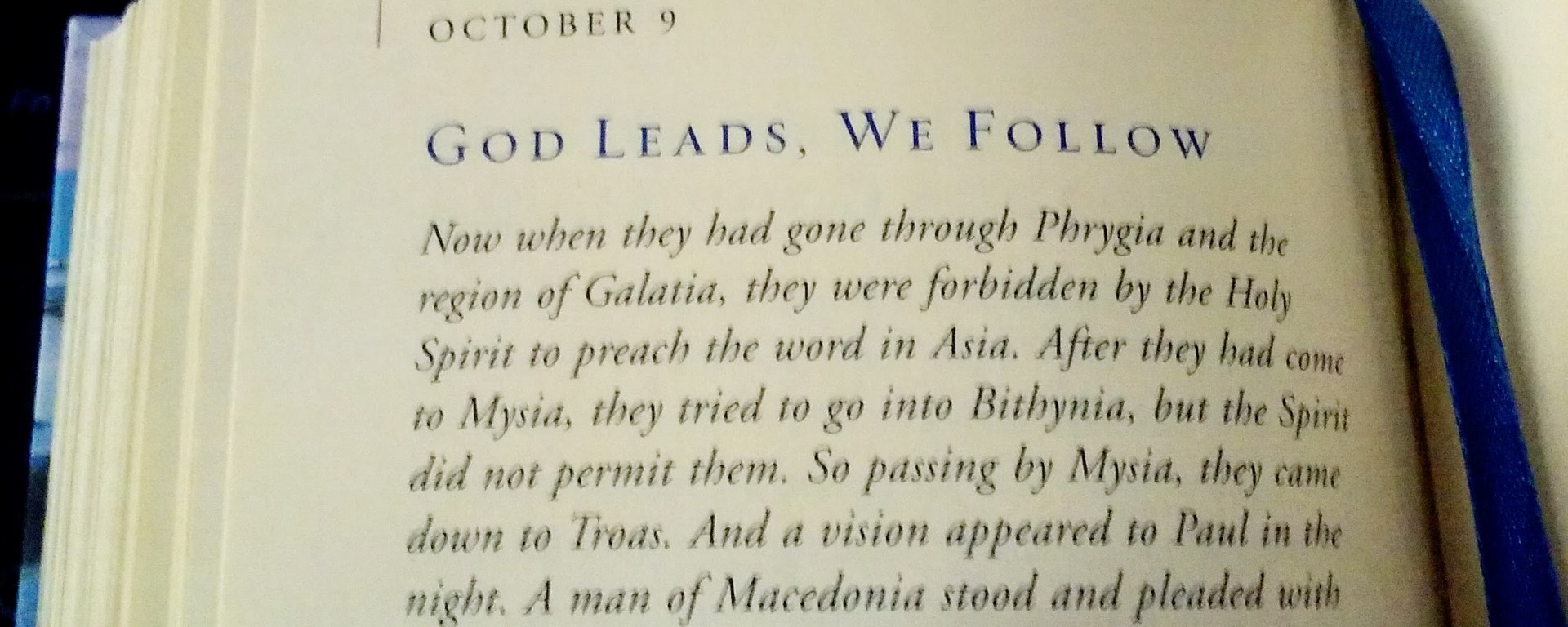 Acts 16:6-8 [NASB] – They passed through the Phrygian and Galatian region, having been forbidden by the Holy Spirit to speak the word in Asia; and after they came to Mysia, they were trying to go into Bithynia, and the Spirit of Jesus did not permit them; and passing by Mysia, they came down to Troas.